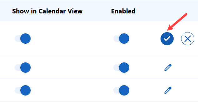 The Show in Calendar View toggle is enabled by default. If you do not want a status to appear in Calendar View, use the toggle to turn it off.
