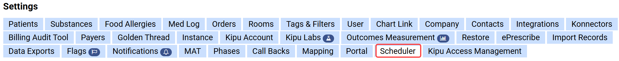 Appointment Statuses (e.g., Arrived, No Show, etc.) are assigned to appointments in the Scheduler to help manage scheduling workflows. There are 12 system default statuses. From the Appointment Status Settings page, you can control which statuses appear in Scheduler, what they are named, how they behave, and their valid transition workflows.